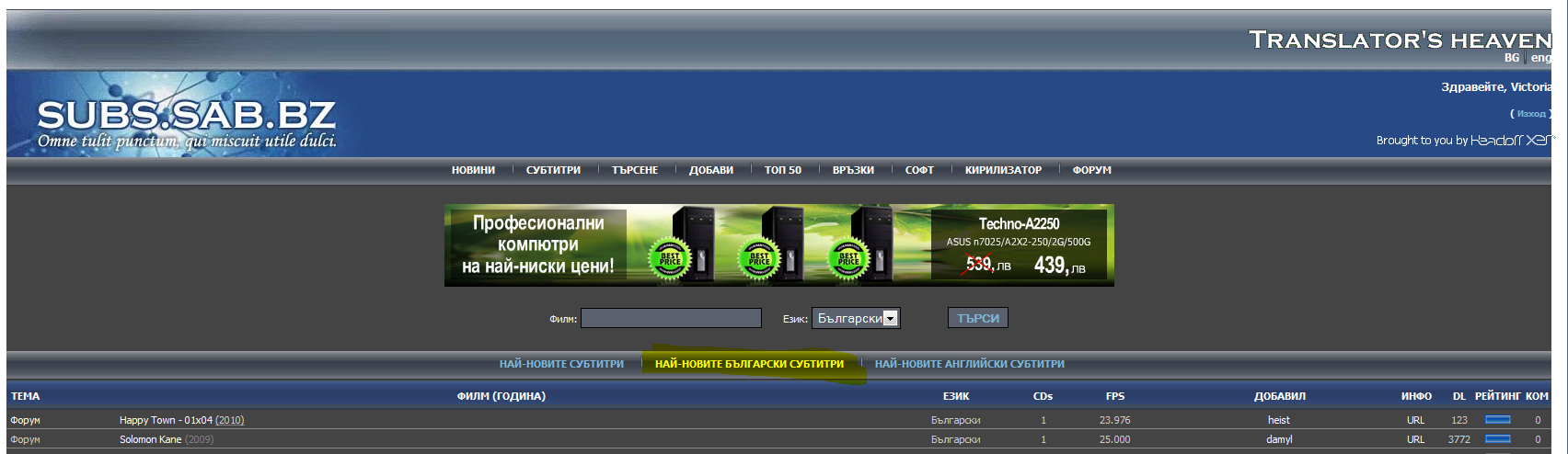 Здравейте, вашият сайт е много хубав. Но имам една малка препоръка: в началната страница преди добави не може ли да се направи графа или както там се казва, наречена "нови субтитри" или нещо подобно? Просто пожелание, нищо лично. Иначе сте супер, продължавайте все така. Благодаря, че ви има! ![]() |